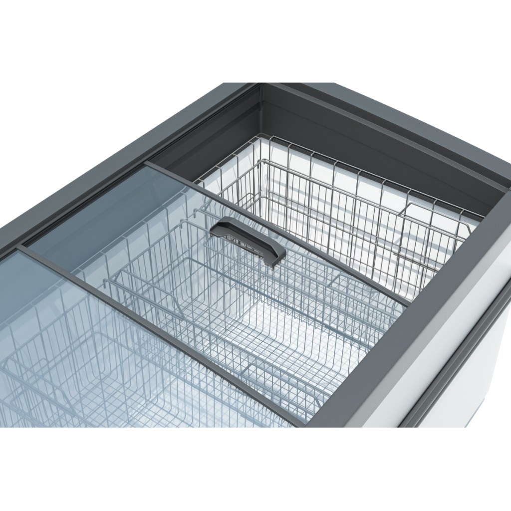 Ларь-бонета морозильная Frostor F 2100 ВЕ серая с делителями — энергоэффективное торговое оборудование класса A, предназначенное для хранения и демонстрации замороженной продукции. Модель подходит для магазинов любого формата и может быть адаптирована под дизайн торгового зала.