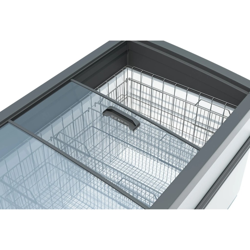 Ларь-бонета морозильная/холодильная Frostor UF 1900 ВЕ серая с корзинами представляет собой универсальное торговое оборудование с функциями охлаждения и заморозки, отлично подходящее как для крупных супермаркетов, так и для небольших продовольственных отделов.