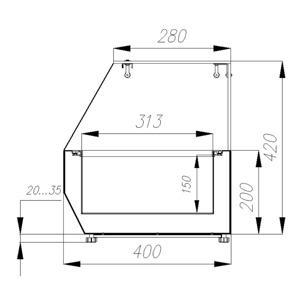 • Регулируемые ножки — позволяют устанавливать витрину как на стол, так и на любую горизонтальную поверхность.