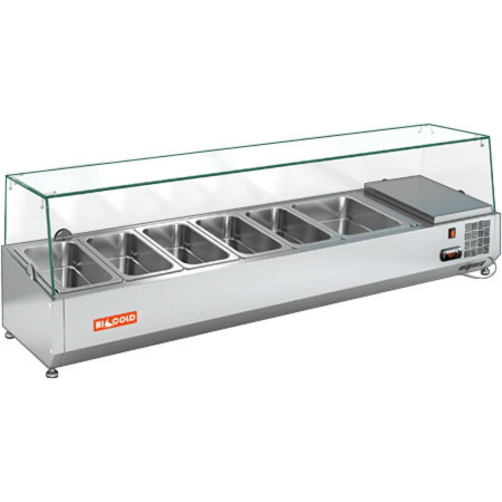 Каталог оборудования Холодильное оборудованиеВитрины для ингредиентовВитрина холодильная для ингредиентов HICOLD VRTG 1525 1/3 Витрина холодильная для ингредиентов HICOLD VRTG 1525 1/3 Код товара: 064-453 Поделиться: WhatsAppTelegram СравнитьДобавить в КПВ избранное 0 66 844 ₽ В корзину 0 шт Под заказСамовывоз сегодня бесплатно Взять в кредит Купить в лизинг Получить консультацию в WhatsApp Описание Характеристики Отзывы 0 Инструкции 2 Витрина холодильная для ингредиентов HICOLD VRTG 1525 1/3 предназначена для охлаждения, кратковременного хранения и наглядной демонстрации ингредиентов, салатов и готовых блюд на предприятиях общественного питания и в торговых точках. Гастроёмкости в комплект не входят, приобретаются отдельно. Основные особенности: Корпус выполнен из нержавеющей стали, обеспечивая долговечность и легкость в уходе; Электронная панель управления для точной настройки температуры; Модель с надстройкой из стекла (исполнение G) для удобной демонстрации продуктов; Высота витрины — 225 мм, высота стеклянной надстройки — 205 мм; Вместимость: 5 гастроёмкостей GN1/3 и 1 гастроёмкость GN1/2; Опорные ножки для устойчивой установки на столешнице. HICOLD VRTG 1525 1/3 — компактная и функциональная настольная витрина, идеально подходящая для демонстрации и кратковременного хранения продуктов на профессиональной кухне или в торговой зоне.Изображение товара, представленного на фото, может отличаться от его фактического вида. Показать все Габаритные размеры1525×385×459 ммДиапазон рабочей температурыот +2 до +7 °CДлина1525 ммГлубина385 ммВысота459 ммТип крышкиСтеклянная Гастроемкостей6 штТип гастроемкостейGN1/3, GN1/2 Напряжение220 ВТип охлажденияСтатическое Материал изготовленияНержавеющая сталь ХладагентR134 Мощность0,15 кВтВес нетто48 кгВес брутто71 кгТип оттайкиРучная Габариты в упаковке1600×540×580 ммБрендHicold Оставить отзыв Еще никто не оставил отзыв на этот товар Инструкция на HICOLD VRTG 1525.pdfДекларация о соответствии.pdf Похожие товары Перейти в каталог Под заказ 53 040 ₽ Витрина холодильная для ингредиентов TEFCOLD VK33-180 С этим товаром покупают В наличии 71 392 ₽ Шкаф холодильный Polair СМ 105-S Ранее просмотрено В наличии 70 407 ₽ Витрина холодильная для ингредиентов HICOLD VRX 1800 1/3