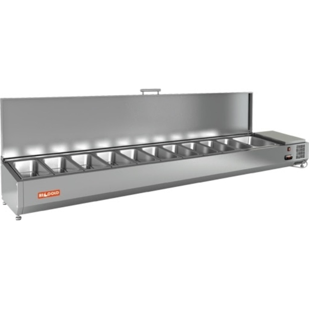 Каталог оборудования Холодильное оборудованиеВитрины для ингредиентовВитрина холодильная для ингредиентов HICOLD VRTU 2360 к PZ4 1(/3) Витрина холодильная для ингредиентов HICOLD VRTU 2360 к PZ4 1(/3) Код товара: 064-671 Поделиться: WhatsAppTelegram СравнитьДобавить в КПВ избранное 0 68 409 ₽ В корзину 0 шт Под заказСамовывоз сегодня бесплатно Взять в кредит Купить в лизинг Получить консультацию в Max Описание Характеристики Отзывы 0 Инструкции 3 Витрина холодильная для ингредиентов HICOLD VRTU 2360 к PZ4 1(/3) предназначена для охлаждения, кратковременного хранения и демонстрации ингредиентов, салатов и готовых блюд на предприятиях общественного питания и торговли. Устанавливается на холодильные столы для пиццы серии PZ4 благодаря встроенным креплениям в нижней части корпуса. На фото показана аналогичная модель с настольной установкой. Ключевые особенности: Корпус из нержавеющей стали — долговечность и лёгкость ухода. Электронная панель управления — точная настройка температуры. Исполнение U — оснащена крышкой для защиты продуктов. Высота витрины — 279 мм — компактное размещение на рабочей поверхности. Вместимость: 10xGN1/3 + 1xGN1/2 — рациональная организация хранения (гастроёмкости приобретаются отдельно). Совместимые модели столов: PZ4-111/GN HICOLD VRTU 2360 к PZ4 1(/3) — это профессиональная настольная витрина, которая сочетает компактные размеры, современное управление и надежную защиту ингредиентов. Отличный выбор для пиццерий, ресторанов и кафе, где важны удобство доступа, сохранность продуктов и высокая скорость работы.Изображение товара, представленного на фото, может отличаться от его фактического вида. Показать все Габаритные размеры2360×385×279 ммДиапазон рабочей температурыот +2 до +7 °CДлина2360 ммГлубина385 ммВысота279 ммТип крышкиМеталлическая Гастроемкостей11 штТип гастроемкостейGN1/2, GN1/3 Напряжение220 ВТип охлажденияСтатическое Материал изготовленияНержавеющая сталь ХладагентR134 Мощность0,15 кВтВес нетто47 кгВес брутто83 кгТип оттайкиРучная Габариты в упаковке2500×485×379 ммБрендHicold Оставить отзыв Еще никто не оставил отзыв на этот товар Инструкция на HICOLD VRTU 2360 к PZ4.pdfСхема установки на витрину.jpgДекларация о соответствии.pdf Похожие товары Перейти в каталог Под заказ 91 697 ₽ Витрина холодильная для ингредиентов TEFCOLD VK38-150 Под заказ Цена по запросу Витрина для ингредиентов Polair VT2-G (1/3) открытого типа С этим товаром покупают В наличии 96 446 ₽ Стол холодильный среднетемпературный Polair ТМ2-G Под заказ 108 783 ₽ Стол морозильный HURAKAN HKN-GN2BT В наличии 38 038 ₽ Льдогенератор Cooleq BF-20 (пальчики) В наличии 83 720 ₽ Шкаф холодильный МХМ Капри 0,7М Ранее просмотрено Под заказ 60 525 ₽ Витрина холодильная для ингредиентов HICOLD VRTU 1970 к PZE3 (1/3) Под заказ 72 081 ₽ Витрина холодильная для ингредиентов HICOLD VRTG 1915 к PZ4 (1/3) Под заказ 60 849 ₽ Витрина холодильная для ингредиентов HICOLD VRTO 2280 к PZ3 (1/3)