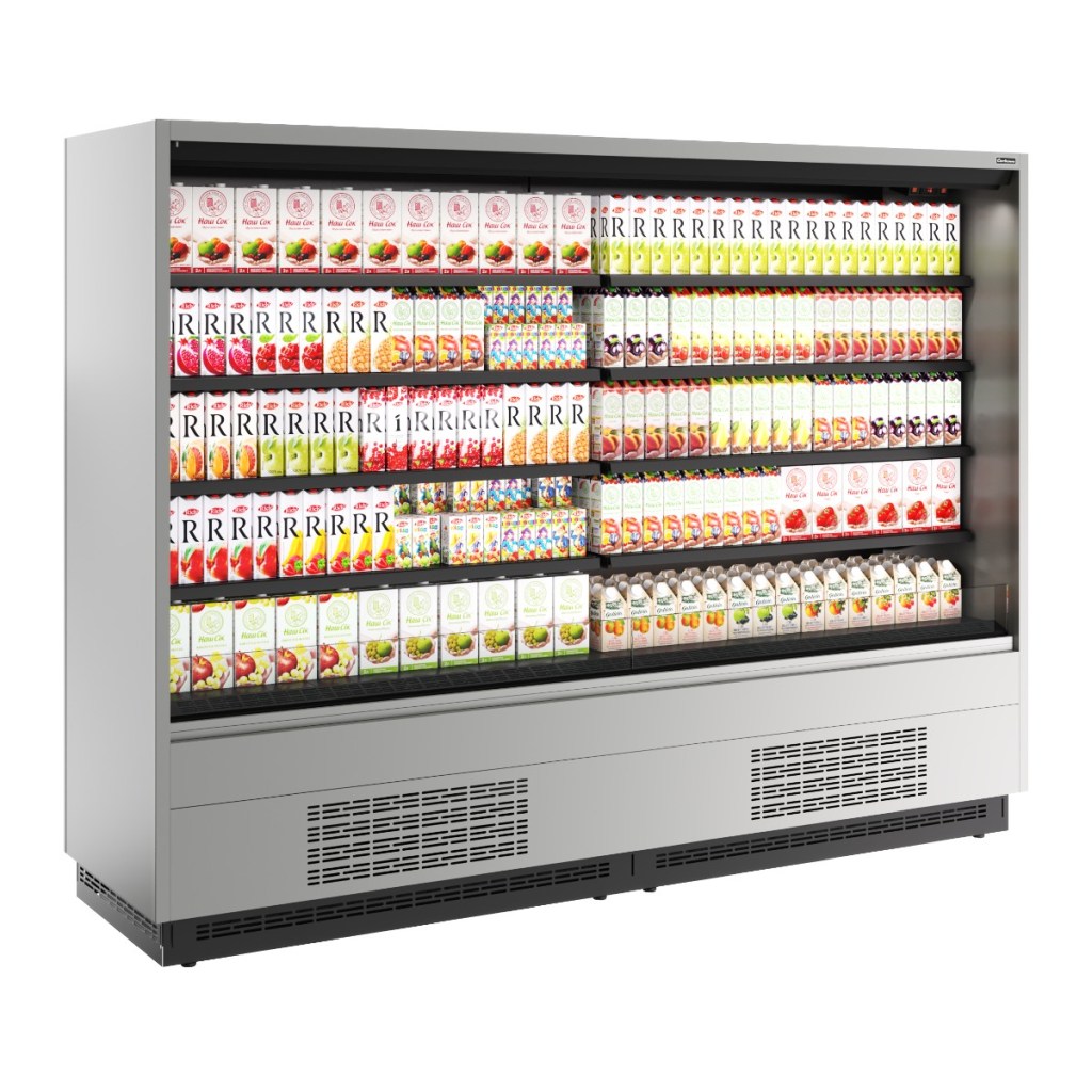 Горка холодильная Carboma FC20-07 VM 2,5-2 0300 (версия 2.0) (9006-9005) (бок металл) применяется на предприятиях общественного питания и торговли для охлаждения, кратковременного хранения и предпродажной демонстрации напитков, мяса, птицы, полуфабрикатов, молочных и гастрономических изделий.