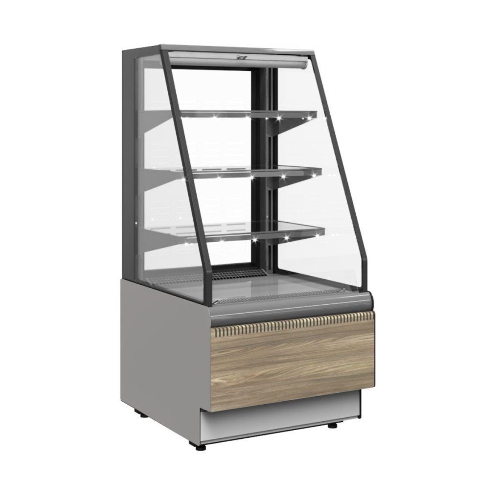 Открытый формат без фронтального стекла — упрощает доступ к товарам и идеально подходит для самообслуживания.