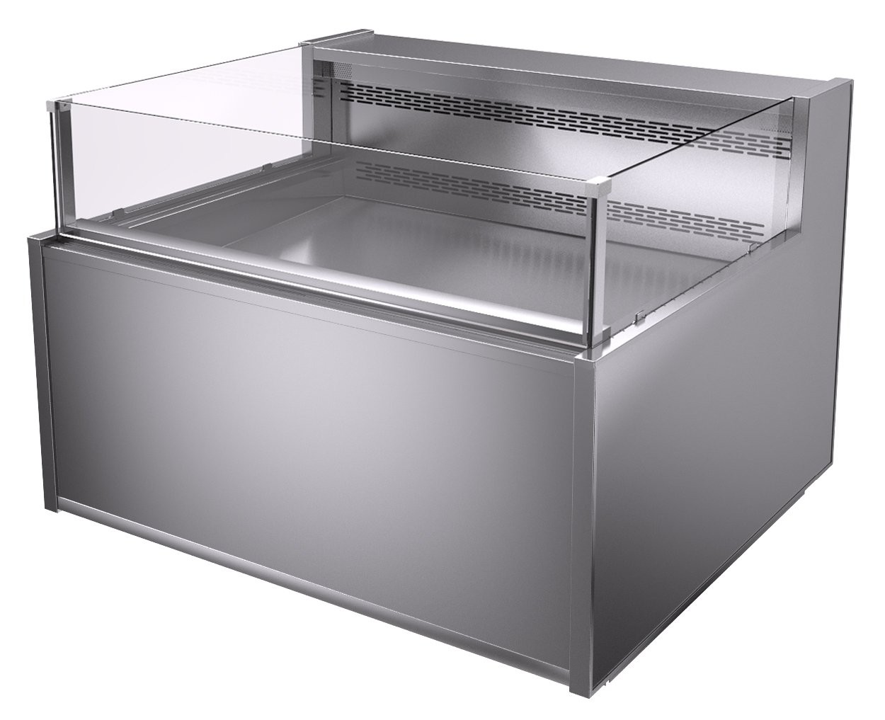 Низкое фронтальное стекло обеспечивает хороший обзор товаров для покупателей.