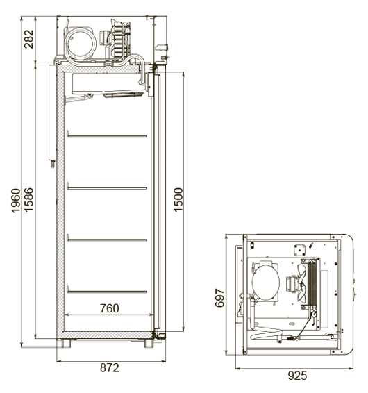 Каталог оборудования Холодильное оборудованиеШкафы холодильныеШкафы холодильные универсальные от -5 до +5 °СШкаф холодильный универсальный Polair CV107-Gm Alu Шкаф холодильный универсальный Polair CV107-Gm Alu Код товара: 062-610 Поделиться: WhatsAppTelegram СравнитьДобавить в КПВ избранное 0 149 175 ₽ В корзину 0 шт Под заказСамовывоз сегодня бесплатно Взять в кредит Купить в лизинг Получить консультацию в WhatsApp Описание Характеристики Отзывы 0 Инструкции 4 Шкаф холодильный универсальный Polair CV107-Gm Alu предназначен для демонстрации и надежного хранения продуктов на предприятиях общественного питания и торговли. Корпус шкафа цельнозаливной, выполнен из прочной стали с полимерным покрытием, что гарантирует высокую механическую прочность и длительный срок службы. Алюминиевые профили дверей и верхней панели подчеркивают современный, премиальный дизайн. Оборудование эффективно работает при температуре окружающей среды до 40 °С и влажности воздуха до 80%. Особенности модели: Многофункциональная контрольная панель (терморегулятор) для удобного управления параметрами. Жидкокристаллический дисплей, обеспечивающий чёткое отображение настроек и информации о работе шкафа. Клапан Шредера для удобного обслуживания холодильного контура. Распашной тип двери для легкого доступа к продуктам. Возможность изменить сторону открывания двери (при наличии опции), что делает установку более универсальной. Полностью интегрированные в профили дверей ручки, подчеркивающие стильный внешний вид и удобство использования. Встроенная светодиодная подсветка для отличной видимости содержимого шкафа. Надежный замок для защиты продуктов. Педаль для удобного открывания двери без использования рук. Высокая допустимая нагрузка на полку — до 40 кг, что позволяет хранить большие объемы продукции. Размер полки: GN 2/1 (530×650 мм), подходит для стандартных гастроемкостей. Толщина стенки корпуса — 43 мм, обеспечивающая отличную теплоизоляцию и снижение энергопотерь. Polair CV107-Gm Alu — это функциональный и стильный холодильный шкаф, который сочетает надежность, эргономичный дизайн и удобство эксплуатации. Использование прочных материалов и продуманная конструкция делают его идеальным решением для профессиональной кухни или торгового зала.Изображение товара, представленного на фото, может отличаться от его фактического вида. Показать все Габаритные размеры697×925×1960 ммДиапазон рабочей температурыот -5 до +5 °CДлина697 ммГлубина925 ммВысота695 ммОбъём700 лРазмер полки530×650 ммКоличество полок4 штКоличество дверей1 штТип оттайкиАвтоматическая Тип охлажденияДинамическое Тип управленияЭлектронное Материал корпусаНержавеющая сталь Тип двериМеталлическая ЗамокЕсть Способ открыванияРаспашные ХладагентR290 Холодильный агрегатВстроенный Расположение агрегатаВерхнее Потребление электроэнергии в сутки4,5 кВтПотребляемая мощность0,4 кВтНапряжение220 ВГабариты в упаковке800×1000×2150 ммВес нетто115 кгВес брутто140 кгБрендPolairВсе шкафы холодильные универсальные от -5 до +5 °С Из нержавейки Оставить отзыв Еще никто не оставил отзыв на этот товар Схема POLAIR CV107-Gm Alu.jpgИнструкция на POLAIR CV107-Gm Alu.pdfДекларация о соответствии.pdfСертификат соответствия.pdf Похожие товары Перейти в каталог Под заказ 129 370 ₽ Шкаф холодильный универсальный Polair CV107-Sm Alu В наличии 145 071 ₽ Шкаф холодильный универсальный Arkto V1.4-S В наличии 106 487 ₽ Шк