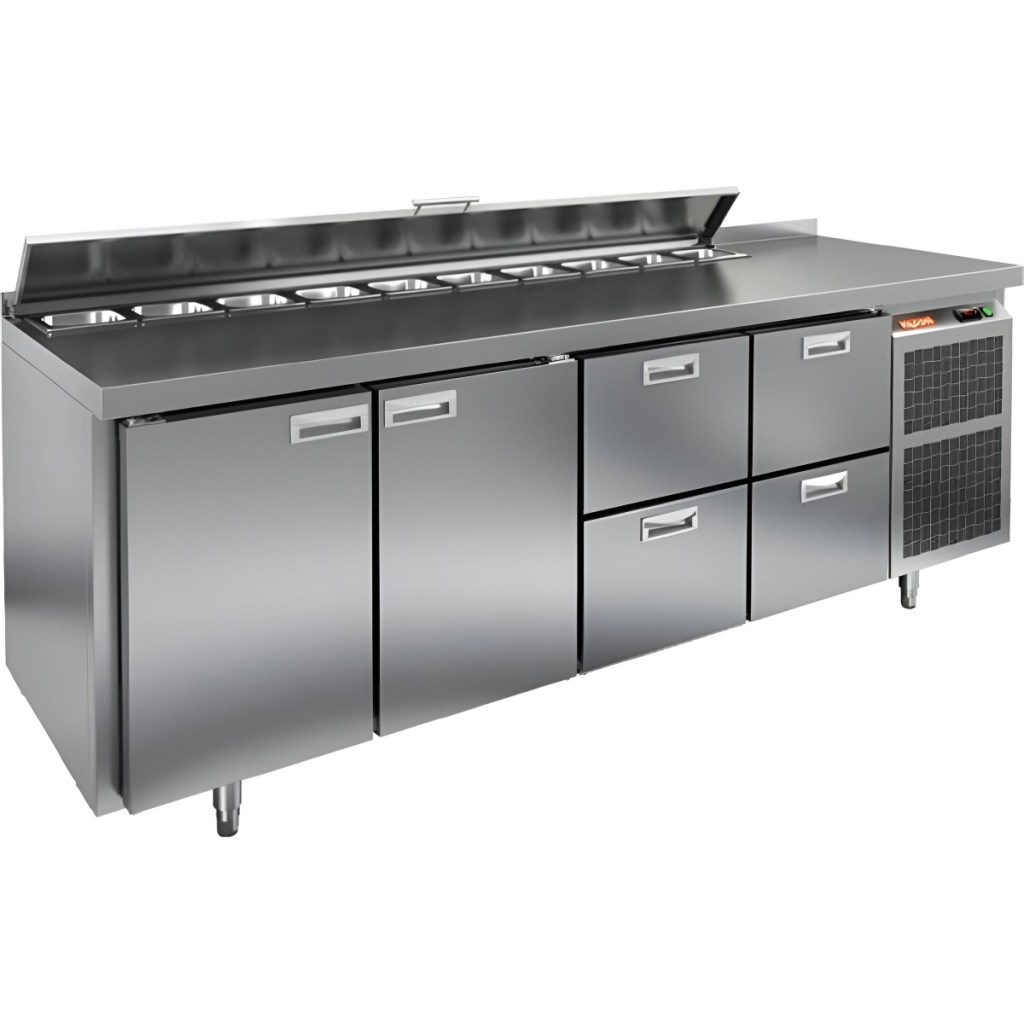 Модель совмещает охлаждаемый объем и рабочую поверхность, что значительно повышает удобство и скорость работы персонала. Корпус и столешница выполнены из прочной и гигиеничной нержавеющей стали, устойчивой к влаге, загрязнениям и механическим повреждениям. Металлическая крышка защищает продукты от загрязнений и сохраняет их свежесть.