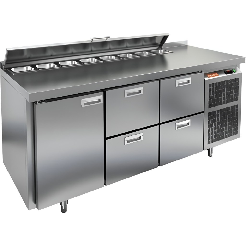 Каталог оборудования Холодильное оборудованиеСтолы охлаждаемыеСтолы холодильные для салатовСтол холодильный для салатов HiCold SL1-122GN (1/3) с крышкой Стол холодильный для салатов HiCold SL1-122GN (1/3) с крышкой Код товара: 064-843 Поделиться: WhatsAppTelegram СравнитьДобавить в КПВ избранное 0 229 492 ₽ В корзину 0 шт Под заказСамовывоз сегодня бесплатно Взять в кредит Купить в лизинг Получить консультацию в WhatsApp Описание Характеристики Отзывы 0 Инструкции 2 Стол холодильный для салатов HiCold SL1-122GN (1/3) предназначен для использования на предприятиях общественного питания и торговли. Он объединяет рабочую поверхность и охлаждаемый отсек, что делает его удобным решением для хранения, охлаждения и подготовки ингредиентов при приготовлении салатов, пиццы и других блюд. Такая конструкция позволяет повару работать быстрее и эффективнее, так как все необходимые продукты находятся под рукой. Корпус и столешница выполнены из прочной нержавеющей стали, устойчивой к коррозии и легко поддающейся санитарной обработке. Металлическая крышка защищает продукты от загрязнений и сохраняет их свежесть. Особенности модели: Электронная панель управления — точная настройка температурного режима. 1 глухая дверь — удобный доступ к холодильному отсеку. 4 выдвижных ящика — быстрое размещение и замена продуктов. Вместимость салат-бара — до 8 гастроемкостей глубиной до 100 мм. Автоматические доводчики дверей с фиксацией в открытом положении. Легкозаменяемые магнитные уплотнители — надежная герметичность. Открытая агрегатная часть — быстрый доступ для обслуживания. Регулируемые по высоте ножки — устойчивость даже на неровном полу. Толщина столешницы, борта и теплоизоляции — 50 мм, что обеспечивает прочность и энергоэффективность конструкции. HiCold SL1-122GN (1/3) — практичное и удобное решение для профессиональной кухни, обеспечивающее удобную подготовку и хранение ингредиентов.Изображение товара, представленного на фото, может отличаться от его фактического вида. Показать все Габаритные размеры1835×700×850 ммДиапазон рабочей температурыот +2 до +10 °CРасположение агрегатаБоковое Материал столешницыНержавеющая Тип столаС дверьми и ящиками Тип двериГлухая Объём505 лКоличество дверей1 штТип гастроемкостейGN 1/3 Количество ящиков4 штРазмер полки530×325 ммНапряжение220 ВМощность0,46 кВтТип охлажденияДинамическое Тип оттайкиАвтоматическая СтолешницаС бортом Вес нетто120 кгВес брутто140 кгБрендHicold Оставить отзыв Еще никто не оставил отзыв на этот товар Паспорт на HICOLD SL1-122GN.pdfДекларация о соответствии.pdf Ранее просмотрено Под заказ 259 282 ₽ Стол холодильный для салатов HiCold SL2-222GN (1/6) с крышкой Под заказ 204 921 ₽ Стол холодильный для салатов HiCold SL1-22GN (1/3) с крышкой Под заказ 172 161 ₽ Стол холодильный для салатов HiCold SLE1-11111GN (1/3) О с крышкой Под заказ 189 622 ₽ Стол холодильный для салатов HiCold SL1-13GN (1/3) с крышкой Под заказ 124 191 ₽ Стол холодильный для салатов HiCold SLE1-11GN (1/3) О с крышкой Под заказ 214 192 ₽ Стол холодильный для салатов HiCold SL1-113GN (1/3) с крышкой Под заказ 126 981 ₽ Стол холодильный для салатов HiCold SLE2-11SN (1/6) З с крышкой