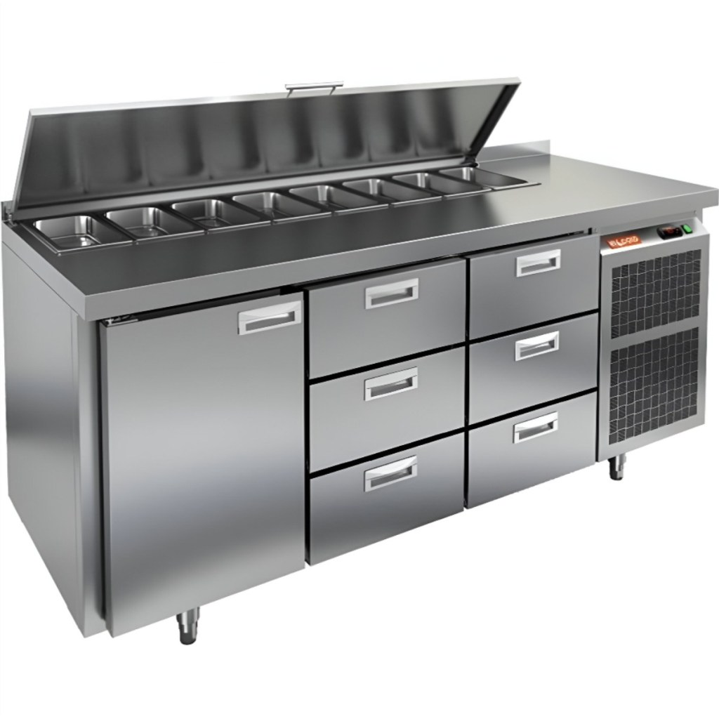 Каталог оборудования Холодильное оборудованиеСтолы охлаждаемыеСтолы холодильные для салатовСтол холодильный для салатов HiCold SL1-133GN (1/3) с крышкой Стол холодильный для салатов HiCold SL1-133GN (1/3) с крышкой Код товара: 064-848 Поделиться: WhatsAppTelegram СравнитьДобавить в КПВ избранное 0 209 962 ₽ В корзину 0 шт Под заказСамовывоз сегодня бесплатно Взять в кредит Купить в лизинг Получить консультацию в WhatsApp Описание Характеристики Отзывы 0 Стол холодильный для салатов HiCold SL1-133GN (1/3) предназначен для использования на предприятиях общественного питания и торговли. Он объединяет рабочую поверхность и охлаждаемый отсек, что делает его удобным решением для хранения, охлаждения и подготовки ингредиентов при приготовлении салатов, пиццы и других блюд. Такая конструкция позволяет повару работать быстрее и эффективнее, так как все необходимые продукты находятся под рукой. Корпус и столешница выполнены из прочной нержавеющей стали, устойчивой к коррозии и легко поддающейся санитарной обработке. Металлическая крышка защищает продукты от загрязнений и сохраняет их свежесть. Особенности модели: Электронная панель управления — точная настройка температурного режима. 1 глухая дверь — удобный доступ к холодильному отсеку. 6 выдвижных ящика — быстрое размещение и замена продуктов. Вместимость салат-бара — до 8 гастроемкостей глубиной до 100 мм. Автоматические доводчики дверей с фиксацией в открытом положении. Легкозаменяемые магнитные уплотнители — надежная герметичность. Открытая агрегатная часть — быстрый доступ для обслуживания. Регулируемые по высоте ножки — устойчивость даже на неровном полу. Толщина столешницы, борта и теплоизоляции — 50 мм, что обеспечивает прочность и энергоэффективность конструкции. HiCold SL1-133GN (1/3) — практичное и удобное решение для профессиональной кухни, обеспечивающее удобную подготовку и хранение ингредиентов. Изображение товара, представленного на фото, может отличаться от его фактического вида. Показать все Габаритные размеры1835×700×850 ммДиапазон рабочей температурыот +2 до +10 °CРасположение агрегатаБоковое Материал столешницыНержавеющая Тип столаС дверьми и ящиками Тип двериГлухая Объём505 лКоличество дверей1 штТип гастроемкостейGN 1/3 Количество ящиков6 штРазмер полки530×325 ммНапряжение220 ВМощность0,46 кВтТип охлажденияДинамическое Тип оттайкиАвтоматическая СтолешницаС бортом Габариты в упаковке2000×850×1000 ммВес нетто130 кгВес брутто185 кгБрендHicold Оставить отзыв Еще никто не оставил отзыв на этот товар Ранее просмотрено Под заказ 174 952 ₽ Стол холодильный для салатов HiCold SLE2-111GN (1/6) О З М с крышкой
