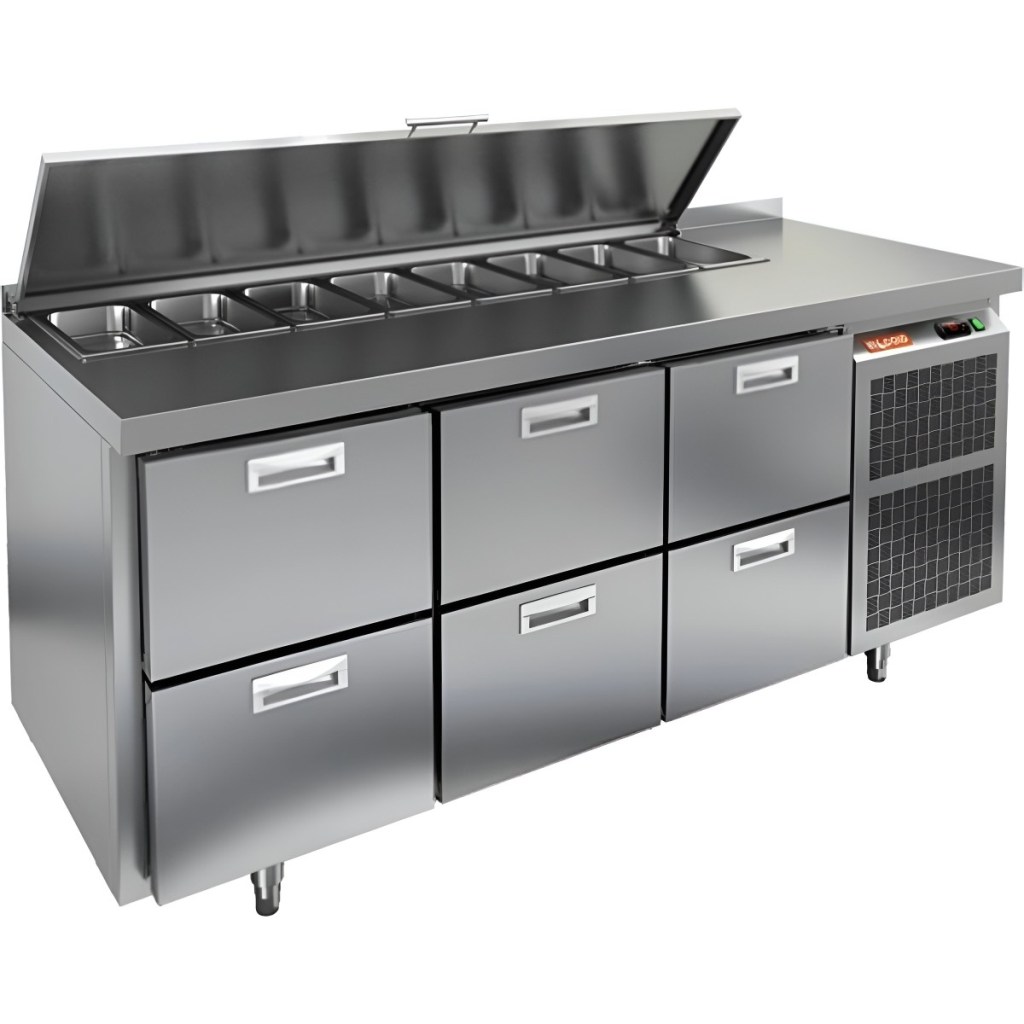 Каталог оборудования Холодильное оборудованиеСтолы охлаждаемыеСтолы холодильные для салатовСтол холодильный для салатов HiCold SL1-222SN (1/3) с крышкой Стол холодильный для салатов HiCold SL1-222SN (1/3) с крышкой Код товара: 064-846 Поделиться: WhatsAppTelegram СравнитьДобавить в КПВ избранное 0 259 642 ₽ В корзину 0 шт Под заказСамовывоз сегодня бесплатно Взять в кредит Купить в лизинг Получить консультацию в WhatsApp Описание Характеристики Отзывы 0 Стол холодильный для салатов HiCold SL1-222SN (1/3) предназначен для использования на предприятиях общественного питания и торговли. Он объединяет рабочую поверхность и охлаждаемый отсек, что делает его удобным решением для хранения, охлаждения и подготовки ингредиентов при приготовлении салатов, пиццы и других блюд. Такая конструкция позволяет повару работать быстрее и эффективнее, так как все необходимые продукты находятся под рукой. Корпус и столешница выполнены из прочной нержавеющей стали, устойчивой к коррозии и легко поддающейся санитарной обработке.Металлическая крышка защищает продукты от загрязнений и сохраняет их свежесть. Особенности модели: Электронная панель управления — точная настройка температурного режима. 6 выдвижных ящика — быстрое размещение и замена продуктов. Вместимость салат-бара — до 8 гастроемкостей глубиной до 100 мм. Автоматические доводчики — комфорт при загрузке/выгрузке. Легкозаменяемые магнитные уплотнители — надежная герметичность. Открытая агрегатная часть — быстрый доступ для обслуживания. Регулируемые по высоте ножки — устойчивость даже на неровном полу. Толщина столешницы, борта и теплоизоляции — 50 мм, что обеспечивает прочность и энергоэффективность конструкции. HiCold SL1-222SN (1/3) — практичное и удобное решение для профессиональной кухни, обеспечивающее удобную подготовку и хранение ингредиентов.Изображение товара, представленного на фото, может отличаться от его фактического вида. Показать все Габаритные размеры1835×600×850 ммДиапазон рабочей температурыот +2 до +10 °CРасположение агрегатаБоковое Материал столешницыНержавеющая Тип столаС ящиками Объём435 лТип гастроемкостейGN 1/3 Количество ящиков6 штНапряжение220 ВМощность0,46 кВтТип охлажденияДинамическое Тип оттайкиАвтоматическая СтолешницаС бортом Габариты в упаковке2000×750×1000 ммВес нетто120 кгВес брутто175 кгБрендHicold Оставить отзыв Еще никто не оставил отзыв на этот товар Ранее просмотрено Под заказ 151 462 ₽ Стол холодильный для салатов HiCold SLS2-11GN (1/6) с крышкой