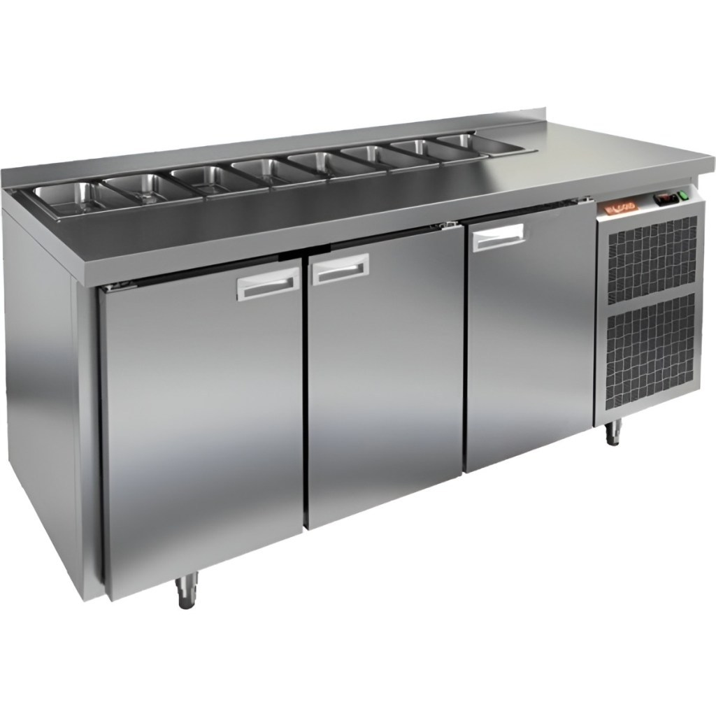 Каталог оборудования Холодильное оборудованиеСтолы охлаждаемыеСтолы холодильные для салатовСтол холодильный для салатов HiCold SL2-111SN (1/6) без крышки Стол холодильный для салатов HiCold SL2-111SN (1/6) без крышки Код товара: 064-807 Поделиться: WhatsAppTelegram СравнитьДобавить в КПВ избранное 0 163 612 ₽ В корзину 0 шт Под заказСамовывоз сегодня бесплатно Взять в кредит Купить в лизинг Получить консультацию в WhatsApp Описание Характеристики Отзывы 0 Инструкции 2 Стол холодильный для салатов HiCold SL2-111SN (1/6) без крышки применяется на предприятиях общественного питания и торговли для хранения ингредиентов, используемых при приготовлении салатов, пиццы и других блюд. Совмещает рабочую поверхность и охлаждаемый отсек, что упрощает работу персонала. Корпус и столешница выполнены из прочной и гигиеничной нержавеющей стали. Столешница с бортом предотвращает скатывание и проливание ингредиентов, обеспечивая аккуратность рабочего пространства. Важно: на фото представлена аналогичная модель с крышкой. Особенности: Электронная панель управления — точная настройка температуры и режимов. 3 полки формата GN 1/1 — вместительное внутреннее хранение. Салат-бар на 8 гастроемкостей — удобная организация ингредиентов. Автоматические доводчики дверей — комфортная эксплуатация. Съёмные магнитные уплотнители — простота замены и герметичность. Открытая агрегатная часть — лёгкий доступ к оборудованию. Регулируемые ножки — установка на любом покрытии. Гастроемкости до 100 мм глубиной, столешница и бортик — по 50 мм, теплоизоляция — 50 мм. HiCold SL2-111SN без крышки — удобный, вместительный и надёжный стол для профессиональной кухни. Идеален для быстрого доступа к охлаждённым ингредиентам в процессе приготовления.Изображение товара, представленного на фото, может отличаться от его фактического вида. Показать все Габаритные размеры1835×600×850 ммДиапазон рабочей температурыот +2 до +10 °CРасположение агрегатаБоковое Материал столешницыНержавеющая Тип столаС дверьми Тип двериГлухая Объём435 лКоличество дверей3 штТип гастроемкостейGN 1/6 Размер полки430×325 ммНапряжение220 ВМощность0,46 кВтТип охлажденияДинамическое Тип оттайкиАвтоматическая СтолешницаС бортом Вес нетто120 кгВес брутто184 кгБрендHicold Оставить отзыв Еще никто не оставил отзыв на этот товар Паспорт на HICOLD SL2-111SN.pdfДекларация о соответствии.pdf Ранее просмотрено Под заказ 174 501 ₽ Стол холодильный для салатов HiCold SLE3-1111GN О без крышки