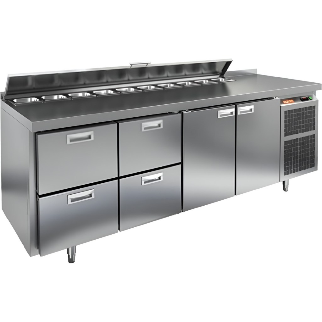 Каталог оборудования Холодильное оборудованиеСтолы охлаждаемыеСтолы холодильные для салатовСтол холодильный для салатов HiCold SL2-2211GN (1/6) с крышкой Стол холодильный для салатов HiCold SL2-2211GN (1/6) с крышкой Код товара: 064-823 Поделиться: WhatsAppTelegram СравнитьДобавить в КПВ избранное 0 258 922 ₽ В корзину 0 шт Под заказСамовывоз сегодня бесплатно Взять в кредит Купить в лизинг Получить консультацию в WhatsApp Описание Характеристики Отзывы 0 Инструкции 1 Стол холодильный для салатов HiCold SL2-2211GN (1/6) с крышкой предназначен для использования на предприятиях общественного питания и торговли. Он подходит для хранения, обработки и кратковременного охлаждения ингредиентов, применяемых при приготовлении пиццы, салатов, закусок и других блюд. Модель совмещает охлаждаемый объем и рабочую поверхность, что значительно повышает удобство и скорость работы персонала. Корпус и столешница выполнены из прочной и гигиеничной нержавеющей стали, устойчивой к влаге, загрязнениям и механическим повреждениям. Металлическая крышка защищает продукты от загрязнений и сохраняет их свежесть. Особенности модели: Электронная панель управления — точная настройка температуры. Салат-бар на 11 гастроемкостей — быстрый доступ к ингредиентам. 4 внутренних ящика — удобное размещение продуктов. 2 двери с автоматическими доводчиками — комфортный доступ к холодильному отсеку. Съёмные магнитные уплотнители — герметичность и стабильная температура. Открытая агрегатная часть — лёгкое обслуживание. Регулируемые ножки — установка на любой поверхности. Глубина гастроемкостей до 150 мм, столешница и теплоизоляция — 50 мм. Высота борта — 50 мм — защита рабочей поверхности. HiCold SL2-2211GN (1/6) с крышкой — универсальное и функциональное решение для профессиональной кухни, позволяющее оптимизировать рабочие процессы и повысить производительность за счет удобного хранения и быстрого доступа к ингредиентам.Изображение товара, представленного на фото, может отличаться от его фактического вида. Показать все Габаритные размеры2280×700×850 ммДиапазон рабочей температурыот +2 до +10 °CРасположение агрегатаБоковое Материал столешницыНержавеющая Тип столаС дверьми Тип двериГлухая Объём660 лКоличество дверей2 штТип гастроемкостейGN 1/6 Количество ящиков4 штРазмер полки530×325 ммНапряжение220 ВМощность0,48 кВтТип охлажденияДинамическое Тип оттайкиАвтоматическая СтолешницаС бортом Габариты в упаковке2420×850×1000 ммВес нетто155 кгВес брутто210 кгБрендHicold Оставить отзыв Еще никто не оставил отзыв на этот товар Декларация о соответствии.pdf Ранее просмотрено Под заказ 127 431 ₽ Стол холодильный для салатов HiCold SLE2-11GN (1/6) З с крышкой В наличии 140 122 ₽ Стол холодильный для салатов HiCold SL1-11GN (1/3) без крышки Под заказ 239 391 ₽ Стол холодильный для салатов HiCold SLE1-222GN (1/3) О с крышкой Под заказ 182 242 ₽ Стол холодильный для салатов HiCold SLE3-111GN полипропилен, с крышкой