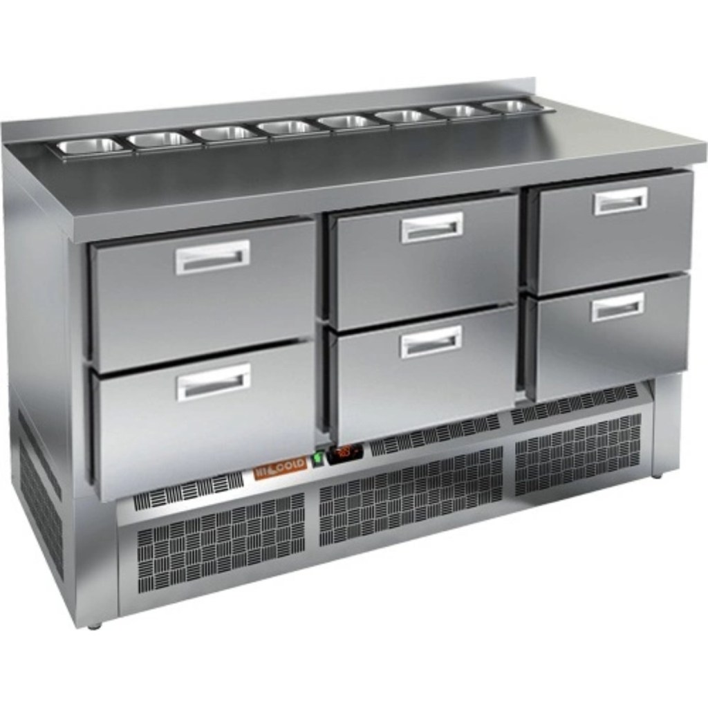 Каталог оборудования Холодильное оборудованиеСтолы охлаждаемыеСтолы холодильные для салатовСтол холодильный для салатов HiCold SLE2-222GN (1/6) без крышки Стол холодильный для салатов HiCold SLE2-222GN (1/6) без крышки Код товара: 064-889 Поделиться: WhatsAppTelegram СравнитьДобавить в КПВ избранное 0 235 882 ₽ В корзину 0 шт Под заказСамовывоз сегодня бесплатно Взять в кредит Купить в лизинг Получить консультацию в WhatsApp Описание Характеристики Отзывы 0 Стол холодильный для салатов HiCold SLE2-222GN (1/6) без крышки — это профессиональный салатный стол, предназначенный для использования в кафе, ресторанах, пиццериях и других предприятиях общественного питания. Он совмещает в себе просторную рабочую поверхность и охлаждаемый объем, обеспечивая удобство и эффективность при приготовлении различных блюд — от салатов до пиццы. Благодаря корпусу и столешнице из нержавеющей стали, оборудование устойчиво к коррозии, легко очищается и соответствует санитарным требованиям. Ключевые особенности: Электронная панель управления — обеспечивает точное регулирование температуры и удобство в эксплуатации. 6 выдвижных ящиков — обеспечивают удобное распределение ингредиентов и быстрый доступ к ним в процессе работы. Салат-бар вмещает до 8 гастроемкостей — оптимален для широкого ассортимента заготовок. Автоматические доводчики дверей с фиксацией — повышают удобство использования, особенно при загрузке и выгрузке продуктов. Магнитные уплотнители — легко заменяются и обеспечивают плотное прилегание, предотвращая утечку холода. Открытая агрегатная часть — облегчает техническое обслуживание. Регулируемые ножки — позволяют установить стол на любой поверхности, компенсируя неровности пола. Глубина гастроемкостей — до 100 мм, толщина столешницы — 50 мм, высота борта — 50 мм, толщина теплоизоляции — 50 мм — обеспечивают стабильное охлаждение и прочность конструкции. HiCold SLE2-222GN (1/6) без крышки — это функциональный и вместительный салатный стол, который идеально подходит для профессиональных кухонь с интенсивной загрузкой. Он сочетает в себе надежность, удобство и продуманную конструкцию для максимальной производительности на рабочем месте.Изображение товара, представленного на фото, может отличаться от его фактического вида. Показать все Габаритные размеры1485×700×850 ммДиапазон рабочей температурыот +2 до +10 °CРасположение агрегатаНижнее Материал столешницыНержавеющая Тип столаС ящиками Объём375 лТип гастроемкостейGN 1/6 Количество ящиков6 штНапряжение220 ВМощность0,2 кВтТип охлажденияДинамическое Тип оттайкиАвтоматическая СтолешницаС бортом Габариты в упаковке1700×850×1080 ммВес нетто115 кгВес брутто160 кгБрендHicold Оставить отзыв Еще никто не оставил отзыв на этот товар Ранее просмотрено Под заказ 185 031 ₽ Стол холодильный для салатов HiCold SLE2-22GN (1/6) О с крышкой Под заказ 191 962 ₽ Стол холодильный для салатов HiCold SL1-1111SN без крышки Под заказ 173 872 ₽ Стол холодильный для салатов HiCold SL2-12GN (1/6) с крышкой