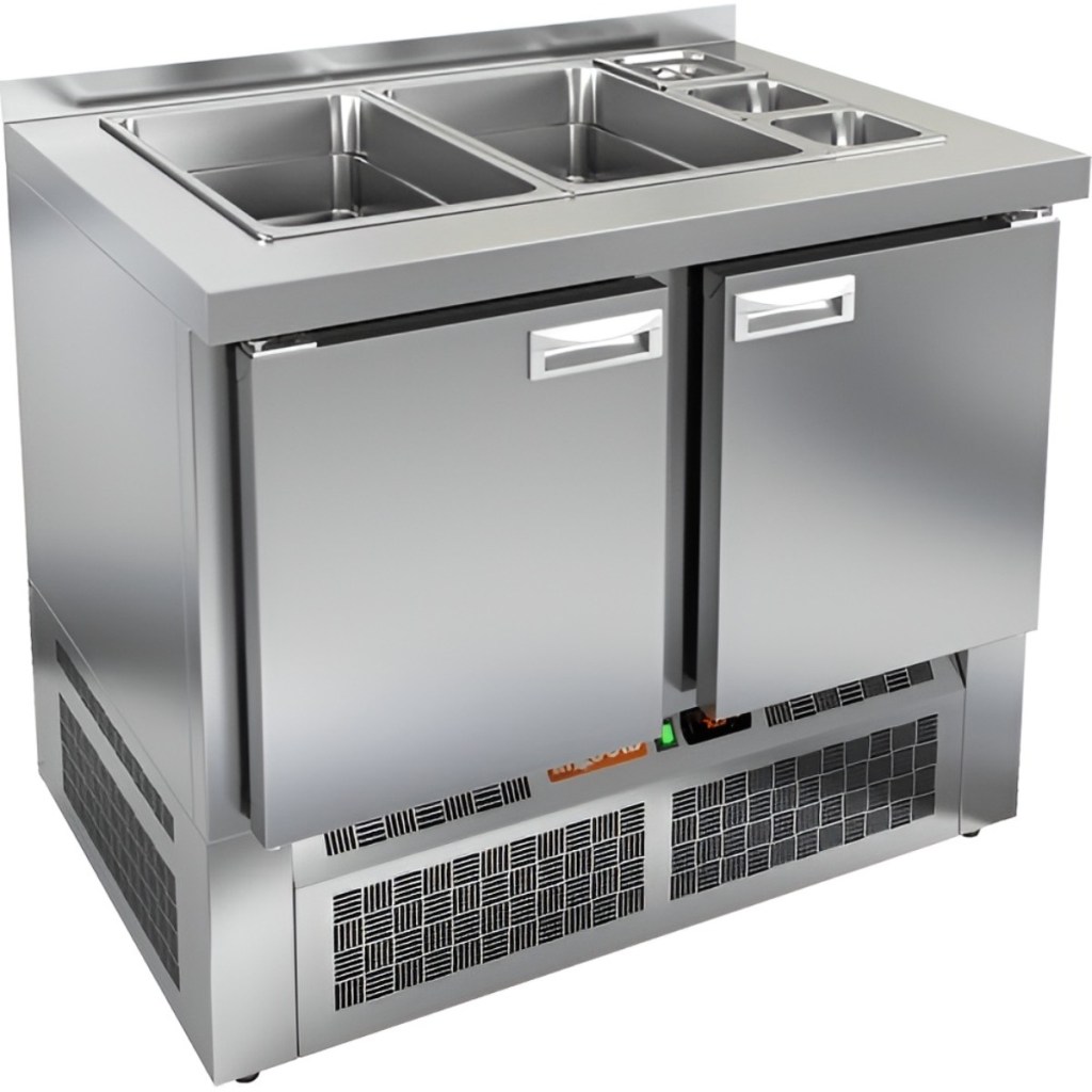 Каталог оборудования Холодильное оборудованиеСтолы охлаждаемыеСтолы холодильные для салатовСтол холодильный для салатов HiCold SLE3-11GN без крышки Стол холодильный для салатов HiCold SLE3-11GN без крышки Код товара: 064-935 Поделиться: WhatsAppTelegram СравнитьДобавить в КПВ избранное 0 118 162 ₽ В корзину 0 шт Под заказСамовывоз сегодня бесплатно Взять в кредит Купить в лизинг Получить консультацию в WhatsApp Описание Характеристики Отзывы 0 Инструкции 2 Стол холодильный для салатов HiCold SLE3-11GN без крышки предназначен для охлаждения и кратковременного хранения продуктов, используемых при приготовлении салатов, закусок, сэндвичей и других блюд. Он идеально подходит для предприятий общественного питания и торговли, где требуется удобный доступ к охлаждённым ингредиентам. Модель сочетает в себе рабочую поверхность и охлаждаемый объём, что обеспечивает эффективную организацию кухонного пространства. Корпус и столешница изготовлены из нержавеющей стали, что гарантирует долговечность конструкции, устойчивость к коррозии и соответствие санитарным нормам. Особенности модели: Электронная панель управления — обеспечивает точный контроль температуры Две полки формата GN 1/1 — для удобного размещения ингредиентов Салат-бар вмещает 2 GN 1/1 и 3 GN 1/6 — для организации набора продуктов Автоматические доводчики дверей с фиксацией открытого положения Магнитные уплотнители — легко заменяются при износе Открытая агрегатная часть — упрощает обслуживание оборудования Регулируемые ножки — для устойчивой установки на любой поверхности Глубина гастроемкостей — до 100 мм Толщина столешницы — 50 мм Толщина теплоизоляции — 50 мм HiCold SLE3-11GN без крышки — функциональное решение для профессиональной кухни, позволяющее хранить ингредиенты в охлаждённом состоянии и всегда иметь их под рукой во время приготовления блюд. Изображение товара, представленного на фото, может отличаться от его фактического вида. Показать все Габаритные размеры1000×700×1315 ммДиапазон рабочей температурыот +2 до +10 °CРасположение агрегатаНижнее Материал столешницыНержавеющая Тип столаС дверьми Тип двериГлухая Объём245 лКоличество дверей2 штТип гастроемкостейGN 1/1, GN 1/6 Размер полки530×325 ммНапряжение220 ВМощность0,15 кВтТип охлажденияДинамическое Тип оттайкиАвтоматическая СтолешницаС бортом Вес нетто95 кгВес брутто140 кгБрендHicold Оставить отзыв Еще никто не оставил отзыв на этот товар Паспорт на HICOLD SLE3-11GN.pdfДекларация о соответствии.pdf Ранее просмотрено Под заказ 144 082 ₽ Стол холодильный для салатов HiCold SLE2-111GN (1/6) без крышки Под заказ 169 732 ₽ Стол холодильный для салатов HiCold SLE2-111GN (1/6) М с крышкой Под заказ 154 431 ₽ Стол холодильный для салатов HiCold SLE2-12GN (1/6) с крышкой Под заказ 208 432 ₽ Стол холодильный для салатов HiCold SLE2-221GN (1/6) с крышкой