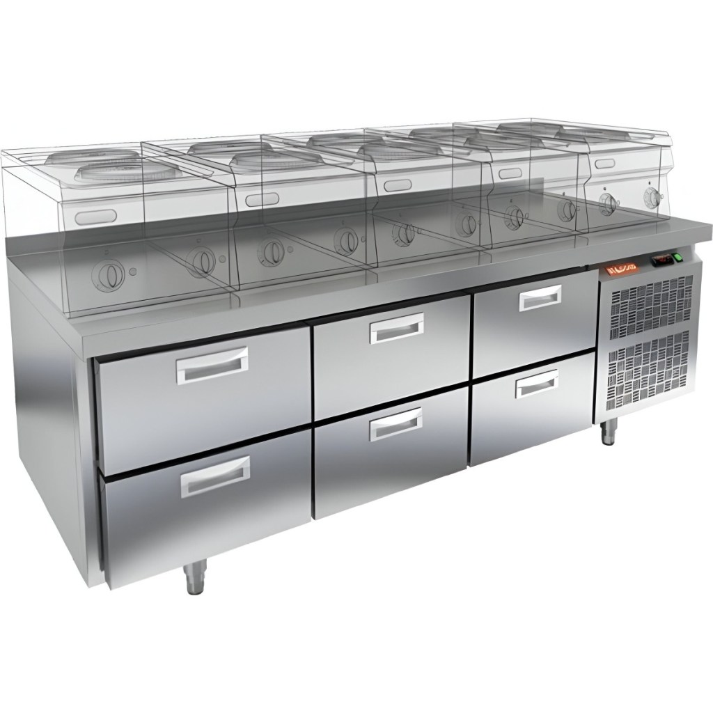 Каталог оборудования Холодильное оборудованиеСтолы охлаждаемыеСтолы холодильные под тепловое оборудованиеСтол охлаждаемый HiCold GN 222/TN LT O под тепловое оборудование Стол охлаждаемый HiCold GN 222/TN LT O под тепловое оборудование Код товара: 065-445 Поделиться: WhatsAppTelegram СравнитьДобавить в КПВ избранное 0 224 092 ₽ В корзину 0 шт Под заказСамовывоз сегодня бесплатно Взять в кредит Купить в лизинг Получить консультацию в WhatsApp Описание Характеристики Отзывы 0 Инструкции 2 Стол охлаждаемый HiCold GN 222/TN LT O под тепловое оборудование предназначен для обработки продуктов и временного хранения скоропортящихся ингредиентов и напитков на предприятиях общественного питания и торговли. Устройство совмещает функции холодильной камеры и рабочей поверхности, что делает его особенно удобным для профессиональных кухонь. Столешница рассчитана на установку теплового оборудования: под рабочей поверхностью встроен ДСП-лист, который укрепляет конструкцию и препятствует проникновению тепла внутрь. Такое решение обеспечивает дополнительную жесткость, позволяет рационально использовать рабочее пространство и повышает эффективность работы на кухне. Внимание! На фото показан стол с бортом. Данная модель поставляется без борта. Особенности: 6 выдвижных ящиков обеспечивают удобный доступ к продуктам и рациональную организацию пространства Автоматические доводчики дверей с фиксатором открытого положения улучшают эргономику работы и помогают сохранить холод внутри камеры. Легкозаменяемые магнитные уплотнители способствуют герметичности и простоте технического обслуживания. Регулируемые по высоте ножки позволяют адаптировать установку под особенности помещения. Нержавеющая столешница без борта для свободного использования рабочей поверхности. Толщина столешницы — 50 мм обеспечивает надёжную опору при интенсивной эксплуатации. Толщина теплоизоляции — 50 мм способствует энергоэффективности и поддержанию стабильной температуры. Температурный диапазон окружающей среды — от 12 до 37 °C, что делает оборудование универсальным в разных климатических условиях. HiCold GN 222/TN LT O сочетает функциональность, надёжность и простоту в обслуживании. Идеально подходит для кухонь ресторанов, кафе и других заведений общепита, где важно одновременно эффективно хранить продукты и иметь под рукой рабочее пространство.Изображение товара, представленного на фото, может отличаться от его фактического вида. Показать все Габаритные размеры1835×700×675 ммДиапазон рабочей температурыот -2 до +10 °CМатериал столешницыНержавеющая Расположение агрегатаБоковое Объём375 лТип столаС ящиками Количество ящиков6 штНапряжение220 ВМощность0,46 кВтТип охлажденияДинамический Тип оттайкиАвтоматическая СтолешницаБез борта Габариты в упаковке2000×850×850 ммВес нетто125 кгВес брутто170 кгБрендHicold Оставить отзыв Еще никто не оставил отзыв на этот товар Паспорт на HICOLD GN 222/TN LT O.pdfДекларация о соответствии.pdf Похожие товары Перейти в каталог Под заказ 137 619 ₽ Стол холодильный среднетемпературный Polair TD3GN-G Под заказ 108 164 ₽ Стол холодильный среднетемпературный HURAKAN HKN-GN3TN С этим товаром покупают Под заказ 389 300 ₽ Шкаф холодильный для вызревания мяса Polair CS107 Meat (Тип 1) Ранее просмотрено Под заказ 230 212 ₽ Стол морозильный HiCold GN 122/BT LT под тепловое оборудование Под заказ 191 422 ₽ Стол морозильный HiCold SN 22/BT LT под тепло