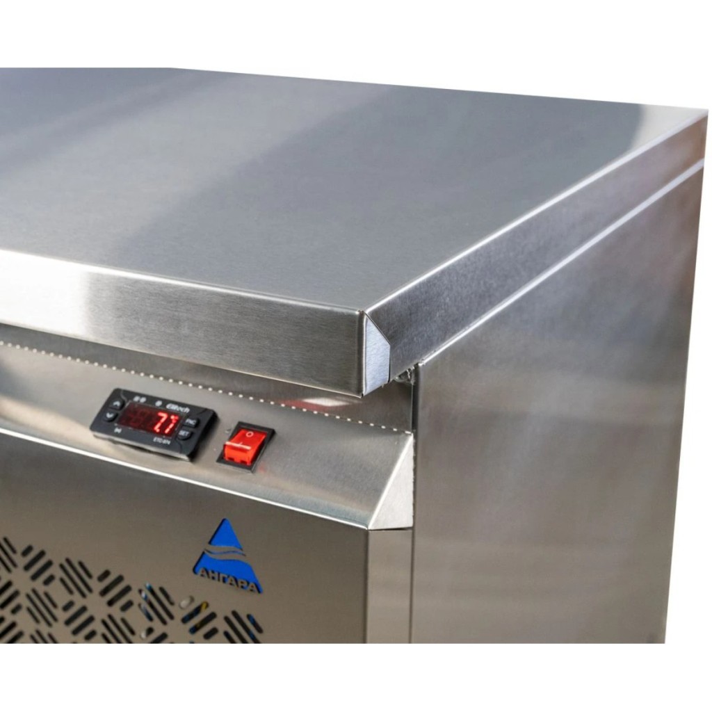 Каталог оборудования Холодильное оборудованиеСтолы охлаждаемыеСтолы холодильные среднетемпературныеСтол холодильный среднетемпературный Ангара СХБ 1,390-500 Стол холодильный среднетемпературный Ангара СХБ 1,390-500 Код товара: 066-348 Поделиться: WhatsAppTelegram СравнитьДобавить в КПВ избранное 0 123 074 ₽ В корзину 0 шт Под заказСамовывоз сегодня бесплатно Взять в кредит Купить в лизинг Получить консультацию в WhatsApp Описание Характеристики Отзывы 0 Стол холодильный среднетемпературный Ангара СХБ 1,390-500 предназначен для обработки ингредиентов и кратковременного хранения скоропортящихся продуктов и напитков на предприятиях общественного питания и торговли. Модель сочетает компактные размеры, функциональность и надёжность, обеспечивая удобство работы на кухне. Особенности модели: Электронное управление — интуитивно понятная панель позволяет точно регулировать температурный режим и контролировать работу устройства. Корпус и столешница из нержавеющей стали — обеспечивают долговечность, устойчивость к коррозии и лёгкость в уходе. Две дверцы и две полки размером 330×325 — обеспечивают удобный доступ к продуктам и рациональное использование внутреннего пространства. Регулируемые ножки — позволяют адаптировать высоту стола под индивидуальные условия рабочей зоны. Автоматические доводчики дверей с фиксацией — двери закрываются плавно и остаются зафиксированными в открытом положении при необходимости. Съёмные магнитные уплотнители — упрощают чистку и замену, поддерживая герметичность и эффективность охлаждения. Диапазон температур: -2…+10 °C / +2…+10 °C, что позволяет использовать стол как для охлаждённых, так и для быстро портящихся продуктов. Холодильный стол Ангара СХБ 1,390-500 — это практичное и надёжное решение для профессиональных кухонь и торговых точек. Совмещение эргономичной конструкции, долговечных материалов и точного электронного контроля температуры обеспечивает удобство эксплуатации и эффективное хранение продуктов в оптимальных условиях.Изображение товара, представленного на фото, может отличаться от его фактического вида. Показать все Габаритные размеры1390×500×850 ммДиапазон рабочей температурыот -2 до +10 °CРасположение агрегатаБоковое Материал столешницыНержавеющая Тип столаС дверьми Тип двериГлухая Объём240 лКоличество дверей2 штКоличество полок2 штРазмер полки330×325 ммНапряжение220 ВМощность0,22 кВтТип охлажденияДинамическое Тип оттайкиАвтоматическая СтолешницаС бортом БрендАнгараВсе нержавеющие холодильные столы Все холодильные столы с бортом Оставить отзыв Еще никто не оставил отзыв на этот товар Ранее просмотрено Под заказ 75 166 ₽ Шкаф холодильный Ангара 500 М