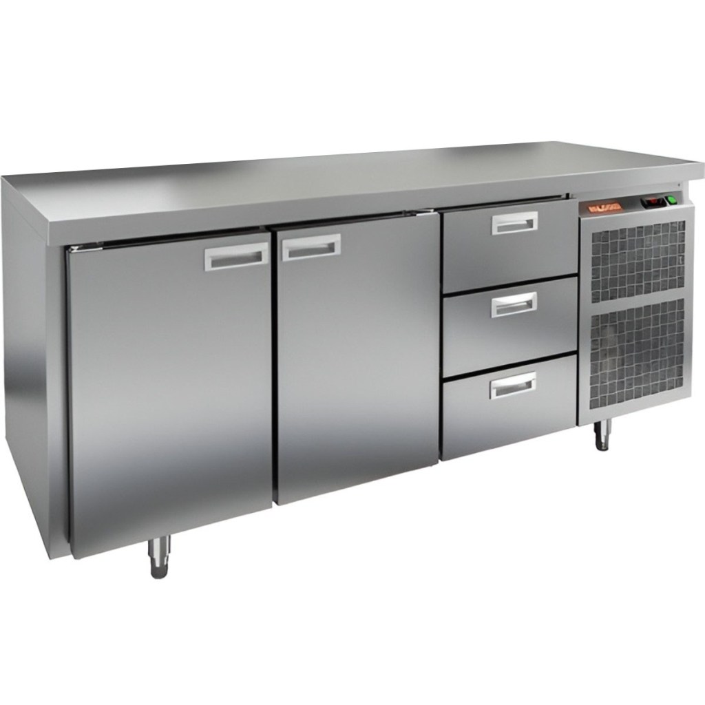 Каталог оборудования Холодильное оборудованиеСтолы охлаждаемыеСтолы морозильные низкотемпературныеСтол морозильный HiCold GN 113/BT O Стол морозильный HiCold GN 113/BT O Код товара: 065-066 Поделиться: WhatsAppTelegram СравнитьДобавить в КПВ избранное 0 220 852 ₽ В корзину 0 шт Под заказСамовывоз сегодня бесплатно Взять в кредит Купить в лизинг Получить консультацию в Max Описание Характеристики Отзывы 0 Инструкции 2 Стол морозильный HiCold GN113/BT О сочетает в себе удобную рабочую поверхность и вместительную морозильную камеру. Верхняя часть используется для раскатки теста и подготовки ингредиентов, а внутренняя камера предназначена для заморозки и хранения продуктов и полуфабрикатов. Стол оснащен двумя глухими дверями и тремя выдвижными ящиками, что обеспечивает удобный доступ к продуктам и рациональное использование внутреннего пространства. Оборудование идеально подходит для предприятий общественного питания. Особенности: Совместимость с GN-стандартом — полки, направляющие и стойки полностью интегрируются с профессиональным кухонным оборудованием. Прочный цельнозаливной корпус из нержавеющей стали с 50 мм изоляцией обеспечивает высокую герметичность и жесткость конструкции. Столешница без борта для удобной работы с крупными и длинными заготовками. Электронный блок управления с повышенной надежностью и несколькими режимами оттаивания. Вентилятор увеличенной мощности и принудительная вентиляция по всему объему камеры для равномерного и быстрого охлаждения. Интеллектуальная система размораживания и термическое выпаривание конденсата снижают затраты на обслуживание. Экономичный компрессор нового поколения снижает энергопотребление. Облегченный доступ к агрегату упрощает сервисное обслуживание. Двери с доводчиками и ПЭН предотвращают примерзание и обеспечивают плотное закрытие. Регулируемые по высоте ножки для устойчивости на разных поверхностях. Максимальная нагрузка на полку — 50 кг. Высота борта рабочей поверхности — 50 мм. Температура окружающей среды: 12–32 °C. HiCold GN113/BT О — это надежный и функциональный морозильный стол, обеспечивающий удобство работы и эффективное хранение продуктов. Он идеально подходит для интенсивной эксплуатации на профессиональных кухнях ресторанов, кафе и предприятий общественного питания.Изображение товара, представленного на фото, может отличаться от его фактического вида. Показать все Габаритные размеры1835×700×850 ммДиапазон рабочей температурыот -18 до -10 °CРасположение агрегатаБоковое Материал столешницыНержавеющая Тип столаС дверьми и ящиками Тип двериГлухая Объём505 лКоличество дверей2 штКоличество ящиков3 штНапряжение220 ВМощность0,6 кВтТип охлажденияДинамический Тип оттайкиАвтоматическая СтолешницаБзе борта Габариты в упаковке200×845×995 ммВес нетто210 кгВес брутто230 кгБрендHicoldВсе морозильные столы HicoldВсе морозильные столы без борта Оставить отзыв Еще никто не оставил отзыв на этот товар Паспорт на HICOLD GN113/BT О.pdfДекларация о соответствии.pdf Похожие товары Перейти в каталог Под заказ 169 732 ₽ Стол морозильный Abat СХН-70-02 без борта (дверь, дверь, дверь) Под заказ 156 861 ₽ Стол морозильный HiCold GN 111/BT W Ранее просмотрено В наличии 192 771 ₽ Сплит-система холодильная низкотемпературная Intercold LCM 316 FT Evolution (опция -30° С) Под заказ 150 678 ₽ Стол холодильный среднетемпературный HiCold SN 11/TN камень