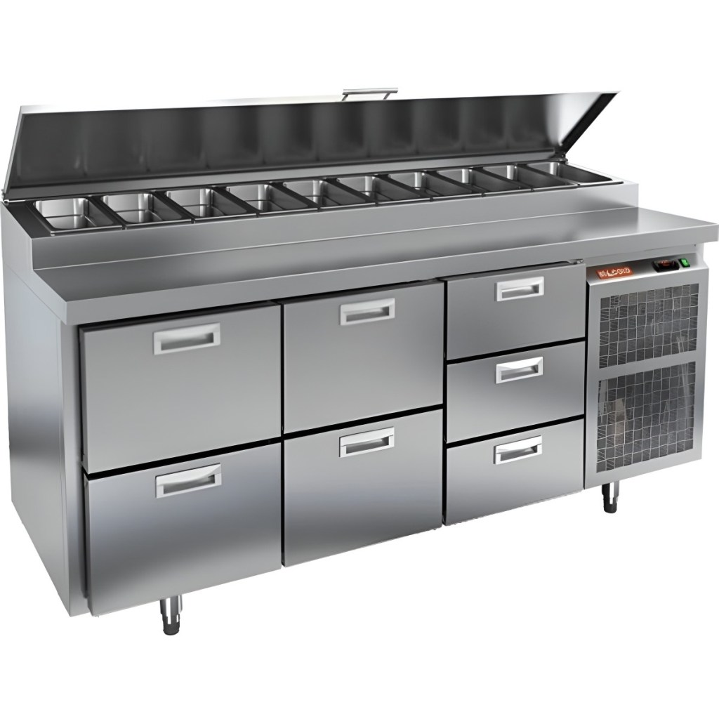 Стол холодильный HiCold PZ1-223GN (1/3H) — надёжный и функциональный холодильный стол для пиццы и салатов. Отсутствие дверцы и продуманная система хранения обеспечивают быстрый доступ к ингредиентам, удобство эксплуатации и высокую производительность на профессиональной кухне.
