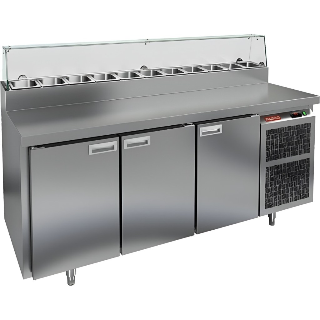 Каталог оборудования Холодильное оборудованиеСтолы охлаждаемыеСтолы холодильные для пиццыСтол холодильный для пиццы HiCold PZ2-111GN (1/6) Стол холодильный для пиццы HiCold PZ2-111GN (1/6) Код товара: 064-738 Поделиться: WhatsAppTelegram СравнитьДобавить в КПВ избранное 0 214 371 ₽ В корзину 0 шт В наличии на 2 складахДоступно для заказа 5 шт.Наличие на складахВолжскг.Волжск, Йошкар-Олинское шоссе, д.20В наличии 3 шт.МоскваМО, Бритово, Раменский гор. округ, Складской комплекс ССТ, корп. 2, секция 2В наличии 2 шт.Самовывоз сегодня бесплатно Расчет стоимости доставкиОткудаВолжскМоскваКудаМоскваСанкт-ПетербургАстраханьБарнаулБелгородБрянскВладивостокВолгоградВоронежЕкатеринбургИвановоИжевскИркутскКазаньКалининградКемеровоКировКраснодарКрасноярскКурскЛипецкМагнитогорскМахачкалаНабережные ЧелныНижний НовгородНижний ТагилНовокузнецкНовосибирскОмскОренбургПензаПермьПятигорскРостов-на-ДонуРязаньСамараСаратовСимферопольСтавропольТверьТольяттиТомскТулаТюменьУлан-УдэУльяновскУфаХабаровскЧебоксарыЧелябинскЯрославльРассчитатьРасчет стоимости доставки указан приблизительный, более точный расчет Вам может осуществить сотрудник транспортной компании. Взять в кредит Купить в лизинг Получить консультацию в Max Описание Характеристики Отзывы 0 Инструкции 2 Стол холодильный для пиццы HiCold PZ2-111GN (1/6) предназначен для использования на предприятиях общественного питания и торговли. Он совмещает рабочую поверхность для раскатки теста и подготовки ингредиентов с охлаждаемым блоком для кратковременного хранения скоропортящихся продуктов и напитков. Такое сочетание значительно упрощает работу повара — все необходимые компоненты всегда под рукой. Корпус и столешница выполнены из нержавеющей стали, что обеспечивает долговечность, гигиеничность и лёгкость ухода. Основные особенности: Динамическая система охлаждения — равномерное распределение холода по всему объёму Автоматическая оттайка — стабильная работа без наледи Электронная панель управления — точная настройка температуры 3 вместительные внутренние полки формата GN 1/1 (размер 530×325 мм) — удобное хранение ингредиентов Автоматические доводчики дверей с фиксатором открытого положения — комфортная эксплуатация Легкозаменяемые магнитные уплотнители — поддержание герметичности Открытая агрегатная часть — лёгкий доступ к техническим элементам Регулируемые по высоте ножки — установка на неровных поверхностях Максимальная глубина гастроёмкостей: 100 мм Глубина рабочей поверхности: 486 мм Толщина столешницы: 50 мм Толщина теплоизоляции: 50 мм Вместимость салат-бара: до 11 гастроёмкостей Стол холодильный HiCold PZ2-111GN (1/6) — надёжный и функциональный стол для пиццы и салатов. Он обеспечивает удобство работы, быстрый доступ к ингредиентам и эффективное охлаждение продуктов. Продуманная конструкция и качественные материалы делают его оптимальным решением для профессиональных кухонь и предприятий общественного питания.Изображение товара, представленного на фото, может отличаться от его фактического вида. Показать все Габаритные размеры1835×700×1000 ммДиапазон рабочей температурыот +2 до +10 °CРасположение агрегатаБоковое Материал столешницыНержавеющая Тип столаС дверьми Тип двериГлухая Объём505 лТип гастроемкостейGN 1/6 Количество дверей3 штРазмер полки530×325 ммНапряжение220 ВМощность0,46 кВтТип о