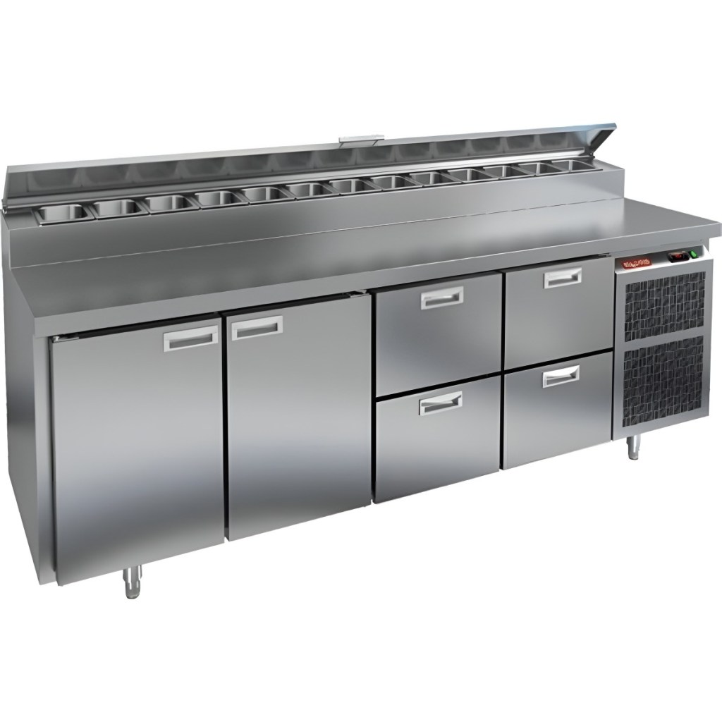Каталог оборудования Холодильное оборудованиеСтолы охлаждаемыеСтолы холодильные для пиццыСтол холодильный для пиццы HiCold PZ2-1122GN (1/6) Стол холодильный для пиццы HiCold PZ2-1122GN (1/6) Код товара: 064-749 Поделиться: WhatsAppTelegram СравнитьДобавить в КПВ избранное 0 311 842 ₽ В корзину 0 шт Под заказСамовывоз сегодня бесплатно Взять в кредит Купить в лизинг Получить консультацию в Max Описание Характеристики Отзывы 0 Стол холодильный для пиццы HiCold PZ2-1122GN (1/6) предназначен для кухонь и предприятий общественного питания. Он используется для раскатки теста, подготовки ингредиентов для пиццы, салатов и других блюд, а также для охлаждения и кратковременного хранения скоропортящихся продуктов. Модель совмещает нержавеющую рабочую поверхность и охлаждаемый отсек с 2 дверями и 4 ящиками, обеспечивая удобный доступ к ингредиентам и эффективное хранение. Особенности: Динамическая система охлаждения для равномерного поддержания температуры Автоматическая оттайка для удобного обслуживания Электронная панель управления для точной настройки параметров Вместительная внутренняя полка формата GN 1/1 (размер 530×325 мм) 2 двери и 4 вместительных ящика для хранения ингредиентов Автоматические доводчики дверей с фиксатором открытого положения Легкозаменяемые магнитные уплотнители для герметичности Открытая агрегатная часть для легкого доступа к компонентам Регулируемые по высоте ножки для устойчивости Нержавеющая столешница глубиной 486 мм и толщиной 50 мм — устойчива к коррозии, легко моется и гигиенична Толщина теплоизоляции: 50 мм Максимальная глубина гастроемкостей: 100 мм Вместимость салат-бара: 13 гастроемкости Стол холодильный для пиццы HiCold PZ2-1122GN (1/6) — это надежный и функциональный стол для пиццы. Он объединяет рабочую поверхность и охлаждаемый отсек, упрощает хранение и подготовку ингредиентов, обеспечивает удобство работы повара и соответствует стандартам профессиональной кухни. Изображение товара, представленного на фото, может отличаться от его фактического вида. Показать все Габаритные размеры2280×700×1000 ммДиапазон рабочей температурыот +2 до +10 °CРасположение агрегатаБоковое Материал столешницыНержавеющая Тип столаС дверьми и ящиками Тип двериГлухая Объём570 лТип гастроемкостейGN 1/6 Количество дверей2 штКоличество ящиков4 штРазмер полки530×325 ммНапряжение220 ВМощность0,51 кВтТип охлажденияДинамическое Тип оттайкиАвтоматическая Габариты в упаковке2420×850×1080 ммВес нетто208 кгВес брутто240 кгБрендHicoldВсе холодильные столы для пиццы HicoldВсе нержавеющие холодильные столы для пиццы Оставить отзыв Еще никто не оставил отзыв на этот товар Ранее просмотрено Под заказ 214 371 ₽ Стол холодильный для пиццы HiCold PZ1-111GN (1/3) Под заказ 83 842 ₽ Холодильная витрина МХМ Парабель ВХСд-1,25