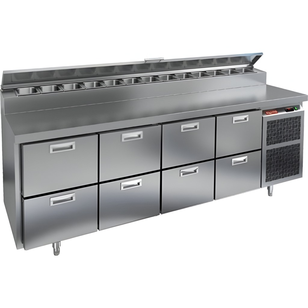 Каталог оборудования Холодильное оборудованиеСтолы охлаждаемыеСтолы холодильные для пиццыСтол холодильный для пиццы HiCold PZ2-2222GN (1/6) Стол холодильный для пиццы HiCold PZ2-2222GN (1/6) Код товара: 064-773 Поделиться: WhatsAppTelegram СравнитьДобавить в КПВ избранное 0 373 042 ₽ В корзину 0 шт Под заказСамовывоз сегодня бесплатно Взять в кредит Купить в лизинг Получить консультацию в WhatsApp Описание Характеристики Отзывы 0 Стол холодильный для пиццы HiCold PZ2-2222GN (1/6) предназначен для кухонь и предприятий общественного питания. Он используется для раскатки теста, подготовки ингредиентов для пиццы, салатов и других блюд, а также для охлаждения и кратковременного хранения скоропортящихся продуктов. Модель совмещает нержавеющую рабочую поверхность и охлаждаемый отсек с 8 выдвижными ящиками, обеспечивая удобный доступ к ингредиентам и эффективное хранение без дверей. Особенности: Динамическая система охлаждения для равномерного поддержания температуры Автоматическая оттайка для удобного обслуживания Электронная панель управления для точной настройки параметров Вместительная внутренняя полка формата GN 1/1 (размер 530×325 мм) 8 выдвижных ящиков для хранения ингредиентов Легкозаменяемые магнитные уплотнители для герметичности Открытая агрегатная часть для легкого доступа к компонентам Регулируемые по высоте ножки для устойчивости Нержавеющая столешница глубиной 486 мм и толщиной 50 мм — устойчива к коррозии, легко моется и гигиенична Толщина теплоизоляции: 50 мм Максимальная глубина гастроемкостей: 100 мм Вместимость салат-бара: 13 гастроемкости Стол холодильный HiCold PZ2-2222GN (1/6) — это надежное и удобное решение для профессиональной кухни. Он обеспечивает легкий доступ к ингредиентам, упрощает хранение и подготовку продуктов и полностью соответствует стандартам предприятий общественного питания.Изображение товара, представленного на фото, может отличаться от его фактического вида. Показать все Габаритные размеры2280×700×1000 ммДиапазон рабочей температурыот +2 до +10 °CРасположение агрегатаБоковое Материал столешницыНержавеющая Тип столаС ящиками Объём660 лТип гастроемкостейGN 1/6 Количество ящиков8 штНапряжение220 ВМощность0,5 кВтТип охлажденияДинамическое Тип оттайкиАвтоматическая Габариты в упаковке2420×850×1080 ммВес нетто208 кгВес брутто240 кгБрендHicoldВсе холодильные столы для пиццы HicoldВсе нержавеющие холодильные столы для пиццы Оставить отзыв Еще никто не оставил отзыв на этот товар Ранее просмотрено Под заказ 278 361 ₽ Стол холодильный для пиццы HiCold PZE1-222GN (1/3) Под заказ 229 941 ₽ Стол холодильный для пиццы HiCold PZ1-13/GN (1/3) Под заказ 434 242 ₽ Стол холодильный для пиццы HiCold PZ2-3333GN (1/6) Под заказ 247 761 ₽ Стол холодильный для пиццы HiCold PZE2-221/GN (1/6H) Под заказ 217 161 ₽ Стол холодильный для пиццы HiCold PZE2-211/GN (1/6H) Под заказ 244 971 ₽ Стол холодильный для пиццы HiCold PZ1-112GN (1/3H) Под заказ 242 721 ₽ Стол холодильный для пиццы HiCold PZE2-1111/GN (1/6) М