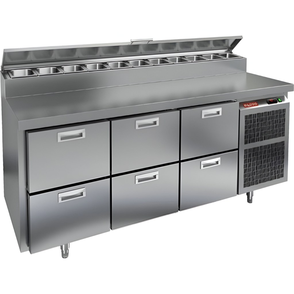 Каталог оборудования Холодильное оборудованиеСтолы охлаждаемыеСтолы холодильные для пиццыСтол холодильный для пиццы HiCold PZ2-222GN (1/6) Стол холодильный для пиццы HiCold PZ2-222GN (1/6) Код товара: 064-774 Поделиться: WhatsAppTelegram СравнитьДобавить в КПВ избранное 0 306 171 ₽ В корзину 0 шт Под заказСамовывоз сегодня бесплатно Взять в кредит Купить в лизинг Получить консультацию в WhatsApp Описание Характеристики Отзывы 0 Стол холодильный для пиццы HiCold PZ2-222GN (1/6) предназначен для кухонь и предприятий общественного питания. Он используется для раскатки теста, подготовки ингредиентов для пиццы, салатов и других блюд, а также для охлаждения и кратковременного хранения скоропортящихся продуктов. Модель совмещает нержавеющую рабочую поверхность и охлаждаемый отсек с 6 выдвижными ящиками, обеспечивая удобный доступ к ингредиентам и эффективное хранение без дверей. Особенности: Динамическая система охлаждения для равномерного поддержания температуры Автоматическая оттайка для удобного обслуживания Электронная панель управления для точной настройки параметров Вместительная внутренняя полка формата GN 1/1 (размер 530×325 мм) 6 выдвижных ящиков для хранения ингредиентов Легкозаменяемые магнитные уплотнители для герметичности Открытая агрегатная часть для легкого доступа к компонентам Регулируемые по высоте ножки для устойчивости Нержавеющая столешница глубиной 486 мм и толщиной 50 мм — устойчива к коррозии, легко моется и гигиенична Толщина теплоизоляции: 50 мм Максимальная глубина гастроемкостей: 100 мм Вместимость салат-бара: 11 гастроемкости Стол холодильный HiCold PZ2-222GN (1/6) — это надежное и удобное решение для профессиональной кухни. Он обеспечивает легкий доступ к ингредиентам, упрощает хранение и подготовку продуктов и полностью соответствует стандартам предприятий общественного питания.Изображение товара, представленного на фото, может отличаться от его фактического вида. Показать все Габаритные размеры1835×700×1000 ммДиапазон рабочей температурыот +2 до +10 °CРасположение агрегатаБоковое Материал столешницыНержавеющая Тип столаС ящиками Объём505 лТип гастроемкостейGN 1/6 Количество ящиков6 штНапряжение220 ВМощность0,5 кВтТип охлажденияДинамическое Тип оттайкиАвтоматическая Габариты в упаковке2000×850×1140 ммВес нетто172 кгВес брутто210 кгБрендHicoldВсе холодильные столы для пиццы HicoldВсе нержавеющие холодильные столы для пиццы Оставить отзыв Еще никто не оставил отзыв на этот товар Ранее просмотрено Под заказ 220 221 ₽ Стол холодильный для пиццы HiCold PZE1-1111GN (1/3) Под заказ 342 442 ₽ Стол холодильный для пиццы HiCold PZ2-1133GN (1/6) Под заказ 236 872 ₽ Стол холодильный для пиццы HiCold PZ1-111GN (1/3) М Под заказ 250 642 ₽ Стол холодильный для пиццы HiCold PZ1-1111GN (1/3)