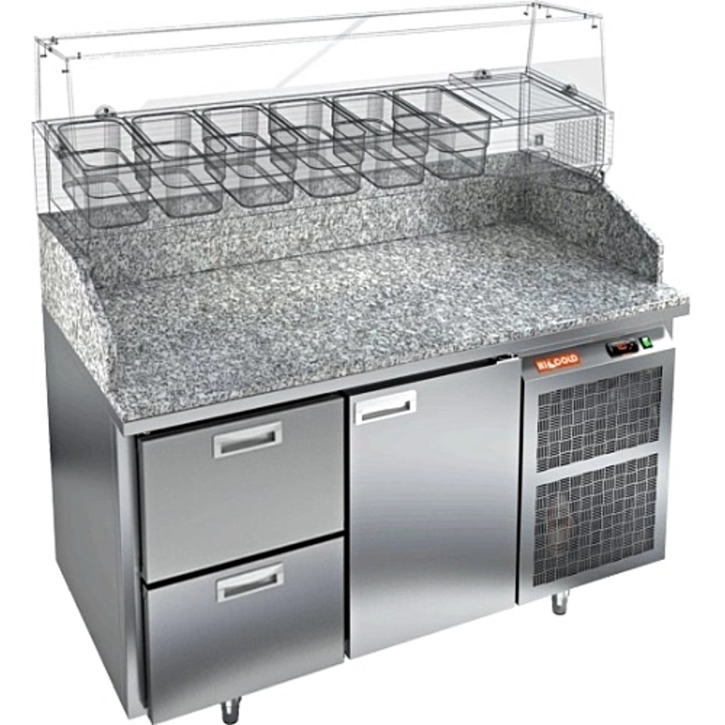 Стол холодильный для пиццы HiCold PZ3-21/GN камень предназначен для использования на предприятиях общественного питания и торговли. Он сочетает удобную гранитную рабочую поверхность и охлаждаемый объём для кратковременного хранения скоропортящихся продуктов и ингредиентов для приготовления пиццы, салатов и других блюд. Такая конструкция облегчает работу повара, обеспечивая быстрый доступ ко всем необходимым компонентам.