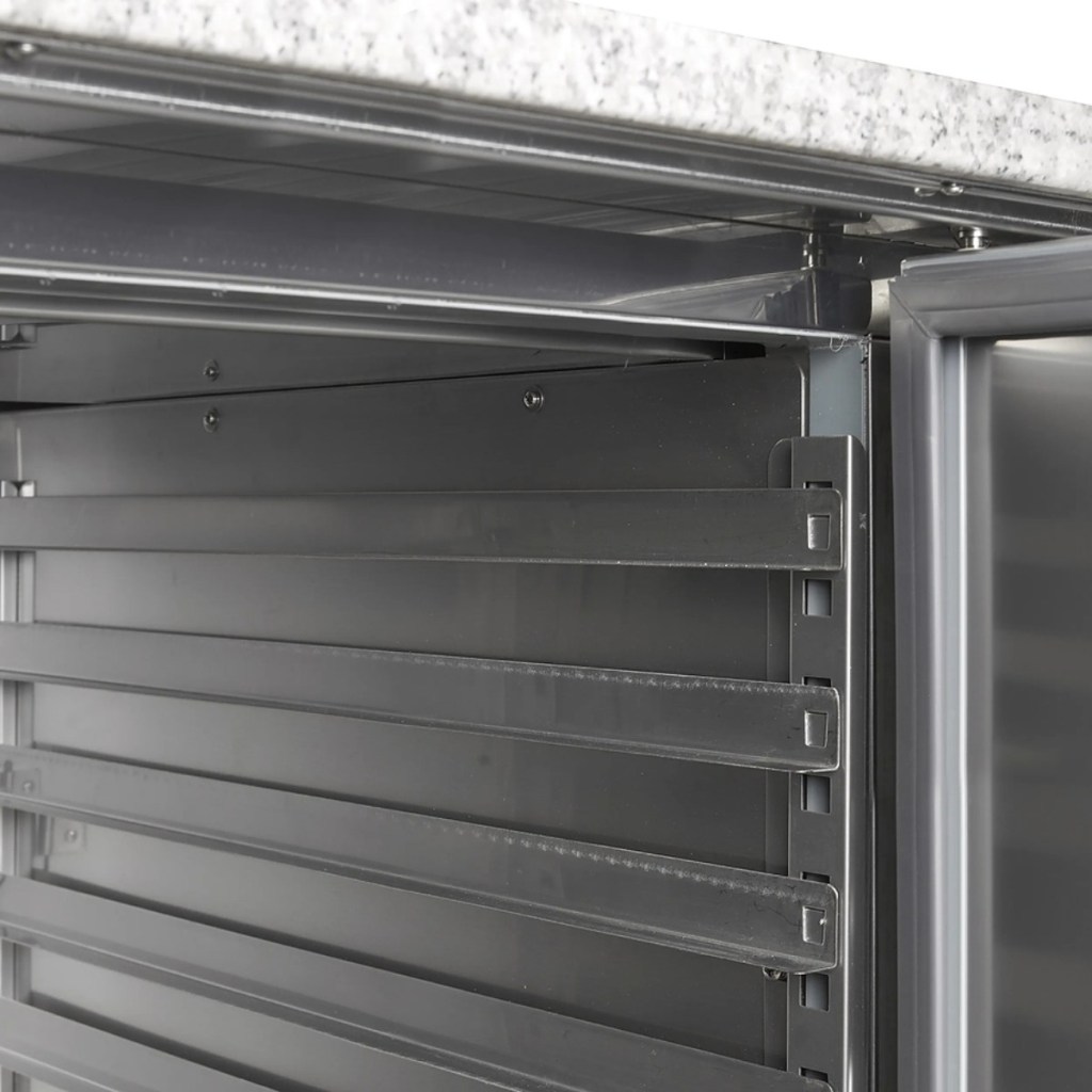 Каталог оборудования Холодильное оборудованиеСтолы охлаждаемыеСтолы холодильные для пиццыСтол холодильный для пиццы TEFCOLD PT1365 + VK33-140 Стол холодильный для пиццы TEFCOLD PT1365 + VK33-140 Код товара: 010-225 Поделиться: WhatsAppTelegram СравнитьДобавить в КПВ избранное 0 258 953 ₽ В корзину 0 шт Под заказСамовывоз сегодня бесплатно Взять в кредит Купить в лизинг Получить консультацию в WhatsApp Описание Характеристики Отзывы 0 Инструкции 2 Стол для пиццы TEFCOLD PT1365 — профессиональное оборудование, предназначенное для обработки ингредиентов, охлаждения и кратковременного хранения продуктов на предприятиях общественного питания и торговли. Корпус и внутренняя обшивка выполнены из нержавеющей стали AISI 304, обеспечивая долговечность, гигиеничность и простоту ухода. Особенности модели: Динамическое охлаждение — равномерное распределение температуры по всему объёму Автоматическое размораживание — поддержание стабильной работы без образования наледи Электронный термостат и градусник — точное регулирование температуры Хладагент R600a, подзарядка — 0,11 кг Самозакрывающиеся двери — герметичность и сохранение холода 3 полки — удобная организация внутреннего пространства Регулируемые по высоте ножки — устойчивость на неровных поверхностях Климатический класс 4 — работа при температуре окружающей среды до +30 °C Полезный объём: 368 л Внутренние размеры: 1295×515×500 мм Энергопотребление: 3 кВт/сутки Уровень шума: 42 дБ TEFCOLD PT1365 — надёжный и функциональный холодильный стол для профессиональных кухонь, пиццерий и предприятий общественного питания. Модель сочетает удобную рабочую поверхность, вместительное охлаждаемое пространство и современную систему управления температурой, обеспечивая сохранность ингредиентов и комфорт в работе. Изображение товара, представленного на фото, может отличаться от его фактического вида. Показать все Габаритные размеры1365×700×1457 ммДиапазон рабочей температурыот +2 до +10 °CРасположение агрегатаНижнее Материал столешницыГранитная Тип столаС дверьми Тип двериГлухая Общий объем400 лПолезный объем368 лТип гастроемкостейGN1/1 Количество дверей3 штКлиматический класс4 Напряжение220 ВРасход электроэнергии в сутки3,15 кВт/сутТип охлажденияДинамическое Тип оттайкиАвтоматическая ХладагентR600a Уровень шума42 дБГабариты в упаковке1440×770×1510 ммВес нетто210 кгВес брутто235 кгБрендTefcold Оставить отзыв Еще никто не оставил отзыв на этот товар Брошюра на TEFCOLD PT1365-I.pdfИнструкция на TEFCOLD PT1365-I.pdf Похожие товары Перейти в каталог Под заказ 197 749 ₽ Стол холодильный для пиццы TEFCOLD PT930 Под заказ 164 643 ₽ Стол холодильный для пиццы Abat СХС-80-01П 2 двери нерж. Под заказ 324 250 ₽ Стол холодильный для пиццы TEFCOLD PT1200 + VK38-150 С этим товаром покупают Под заказ 201 448 ₽ Шкаф морозильный Abat ШХн-1,4-02 Ранее просмотрено Под заказ 324 250 ₽ Стол холодильный для пиццы TEFCOLD PT1200 + VK38-150 Под заказ 125 549 ₽ Витрина холодильная универсальная Ариада Белинда ВУ2-200 Под заказ 58 528 ₽ Витрина холодильная для ингредиентов HICOLD VRTG 1000 1/3 Под заказ 176 969 ₽ Стол холодильный для пиццы Polair TM2pizza-G